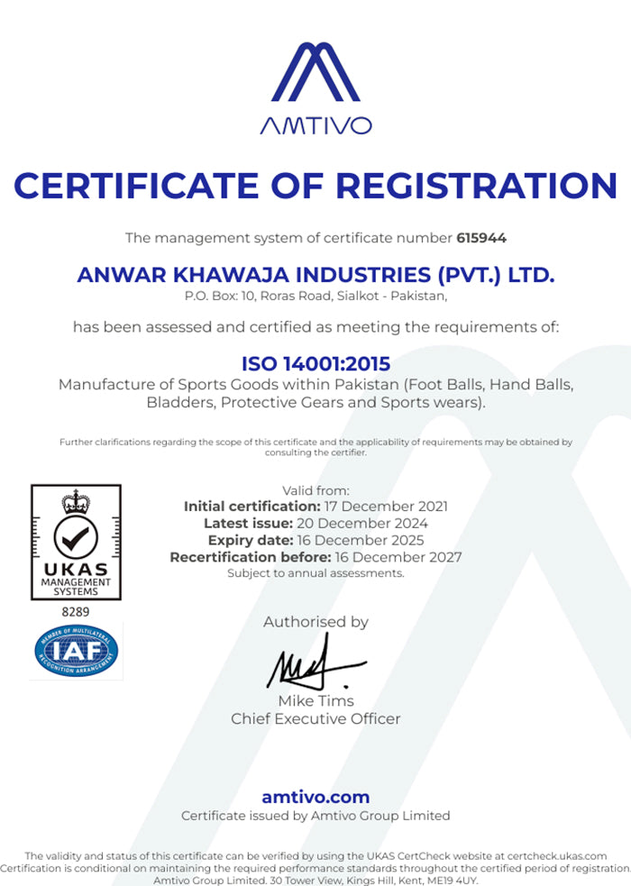 Vårt sociala ansvar sträcker sig långt tillbaka med fokus på Anwar Khawaja Industries (AKI), där alla våra handsydda bollar produceras.