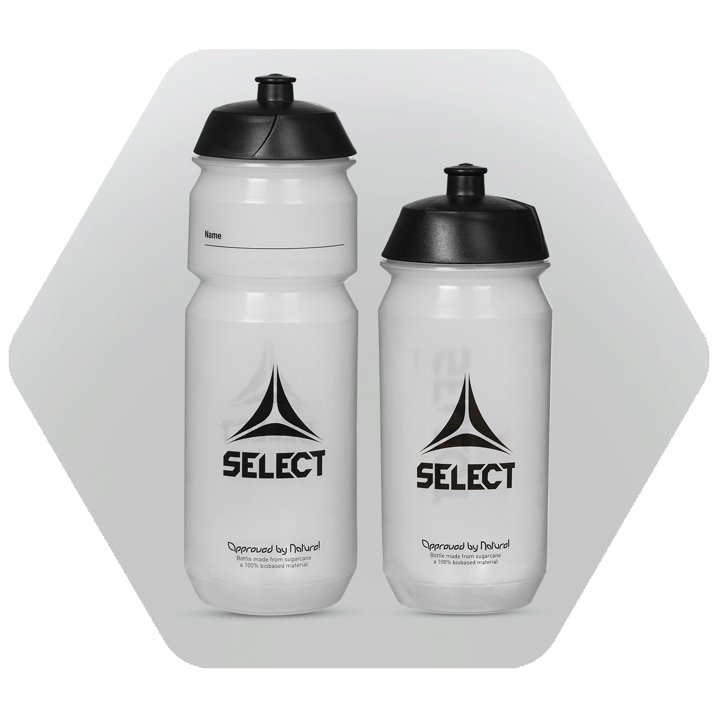 Återanvändbara vattenflaskor i ett 100% biobaserat material bearbetat av sockerrör.