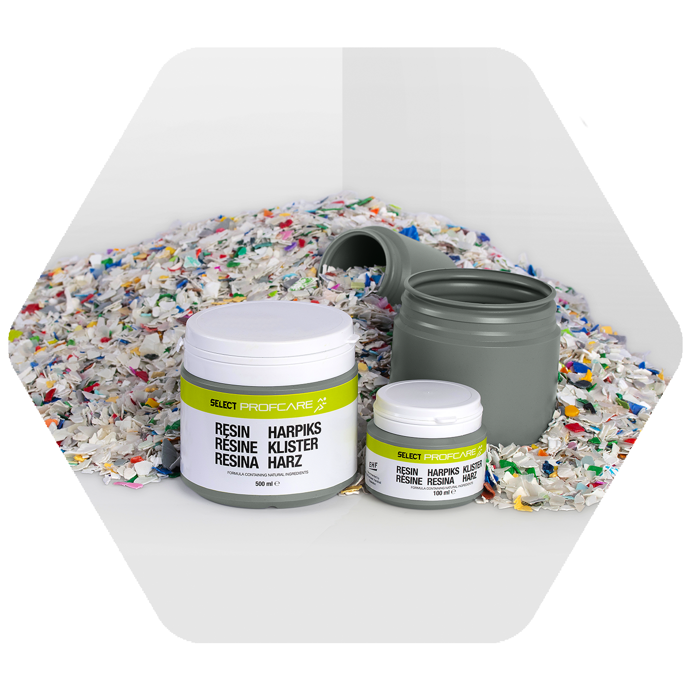 Våra nya burkar är tillverkade av 100% återvunnen plast (förutom locket).