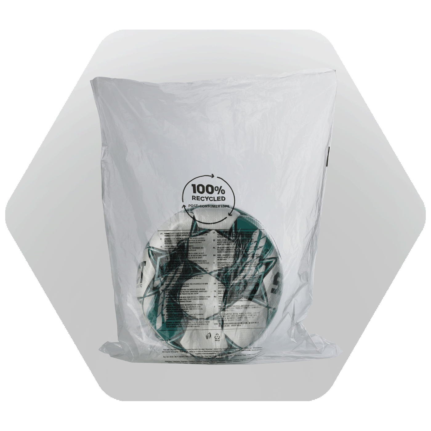 Vår fabrik använder nu bara återvunna plastpåsar när vi tillverkar våra fotbollar och kläder