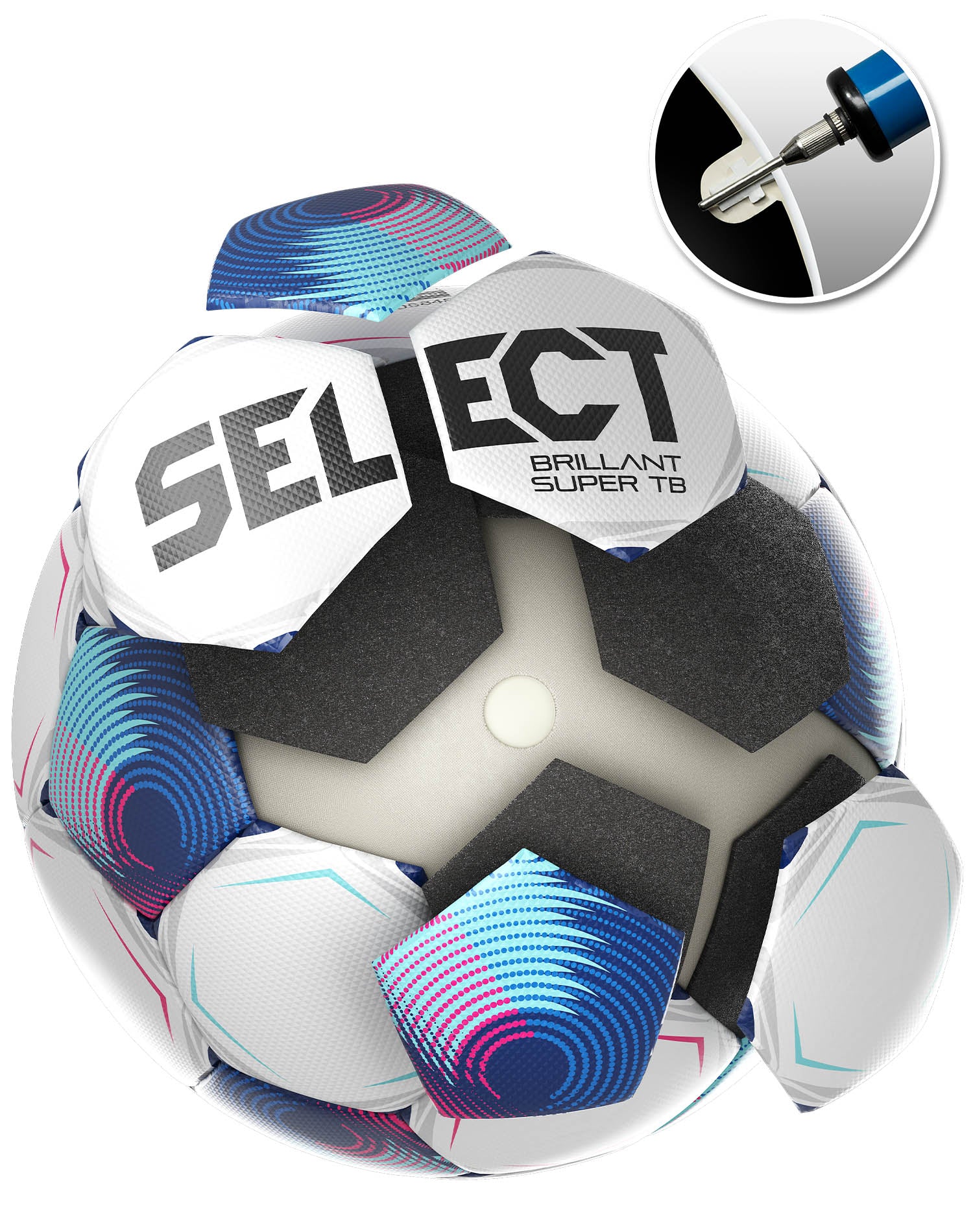 De 32 panelerna på Brillant Super TB är termobundna. "TB" i produktnamnet står för "Thermo Bonded", vilket betyder bunden av värme - så det finns inga sömmar. Det gör att bollen tar upp mindre vatten och håller den ursprungliga vikten bättre när man spelar på vått underlag.